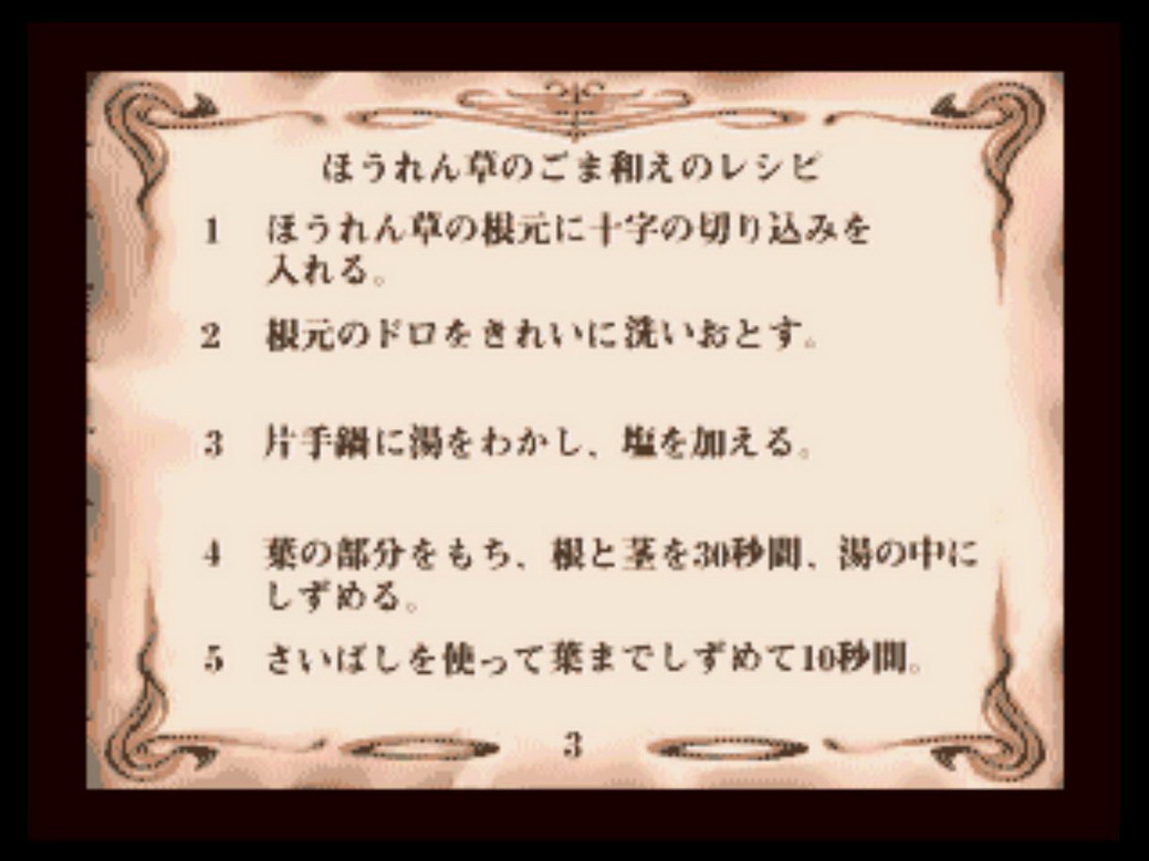 The game has an interesting concept with the cooking theme having shops that only sell food ingredients and cooking utensils and your mission seeming to be to complete recipes and gather the ingredients needed. Exploration is interesting but combat is extremely basic.